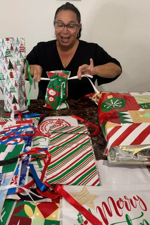 Yes! These bags are made from high-quality, tear-resistant material and can be reused year after year, making them an eco-friendly option for holiday gifting.